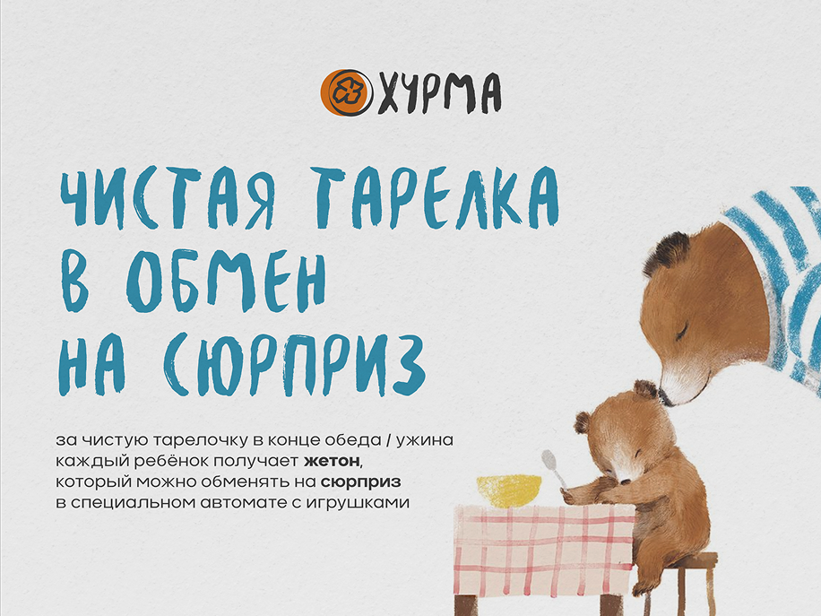 Каждому юному джигиту в конце обеда или ужина мы дарим жетон за чистую тарелочку, который можно обменять на подарок из автомата!